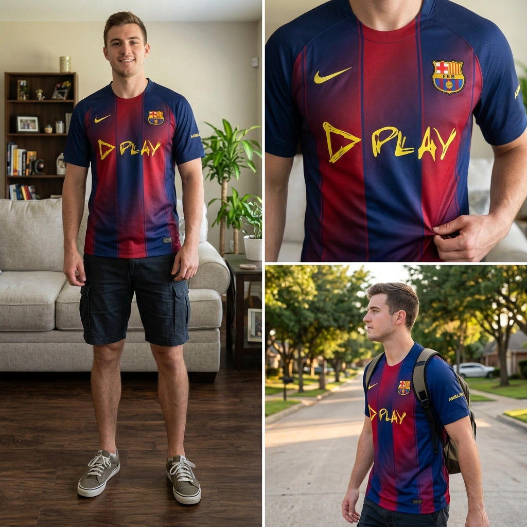 This jersey is amazing! The color gradient looks even better in person than in the pictures. The 'PLAY' logo print is super crisp and the fit is as good as ever. It feels really high quality ⚽️💙❤️