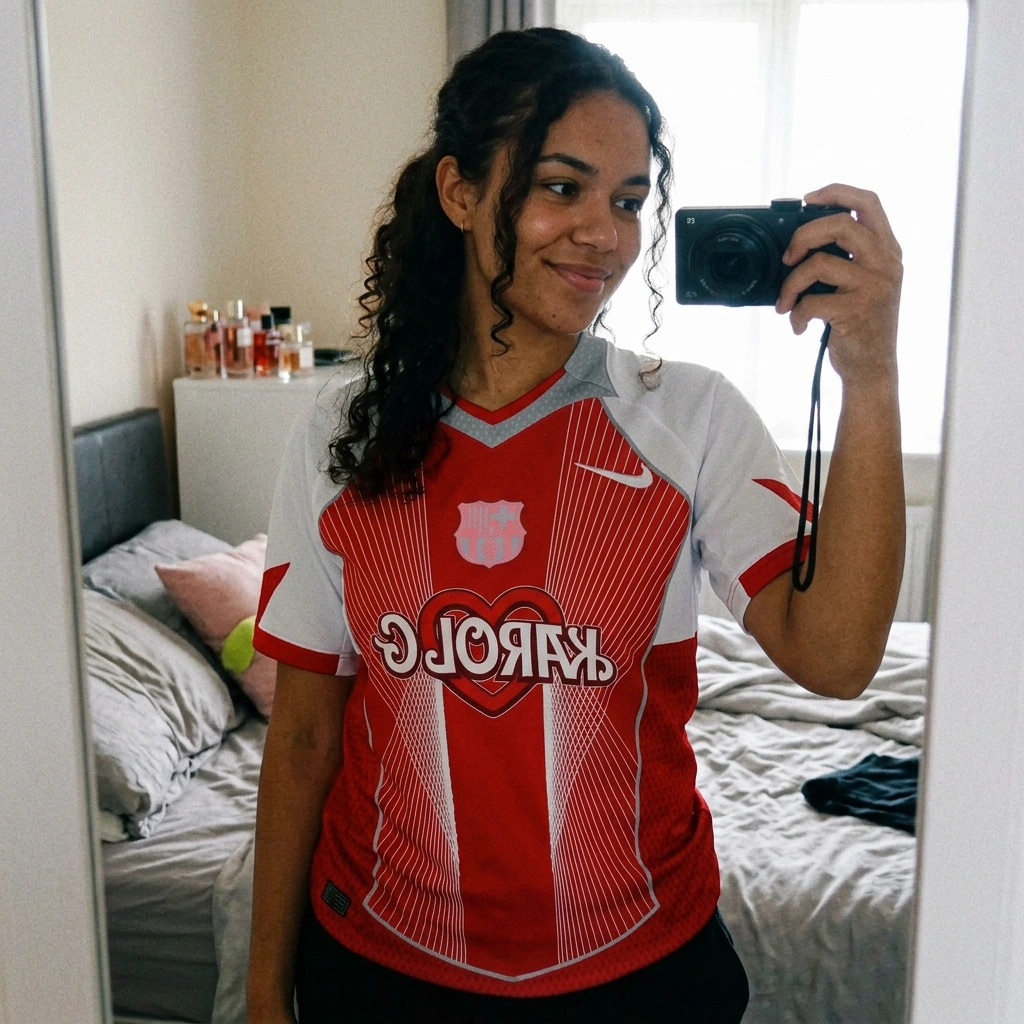 I bought this for my girlfriend; she's a huge Karol G fan and loves Barca. The quality is great, exactly like in the picture. The heart logo in the middle is awesome! 😍 It arrived super fast. It fits perfectly. Thanks!
