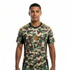 I saw this jersey online and just had to have it. The camouflage pattern combined with the gold details looks even better in person than in the photos. The fabric feels amazing, very light and breathable, perfect for summer. The fit is also great, not too tight and not too loose. The only slight drawback is that the gold stripes on the shoulders seem a bit delicate, but that will become clear over time. Overall, I'm very happy with it and can highly recommend it. 🤙