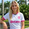 The pink accent is perfect, not too overwhelming on the white. Wore it to a match today and got so many compliments. Fabric feels great too, very breathable. Happy with this purchase. 💖⚽️