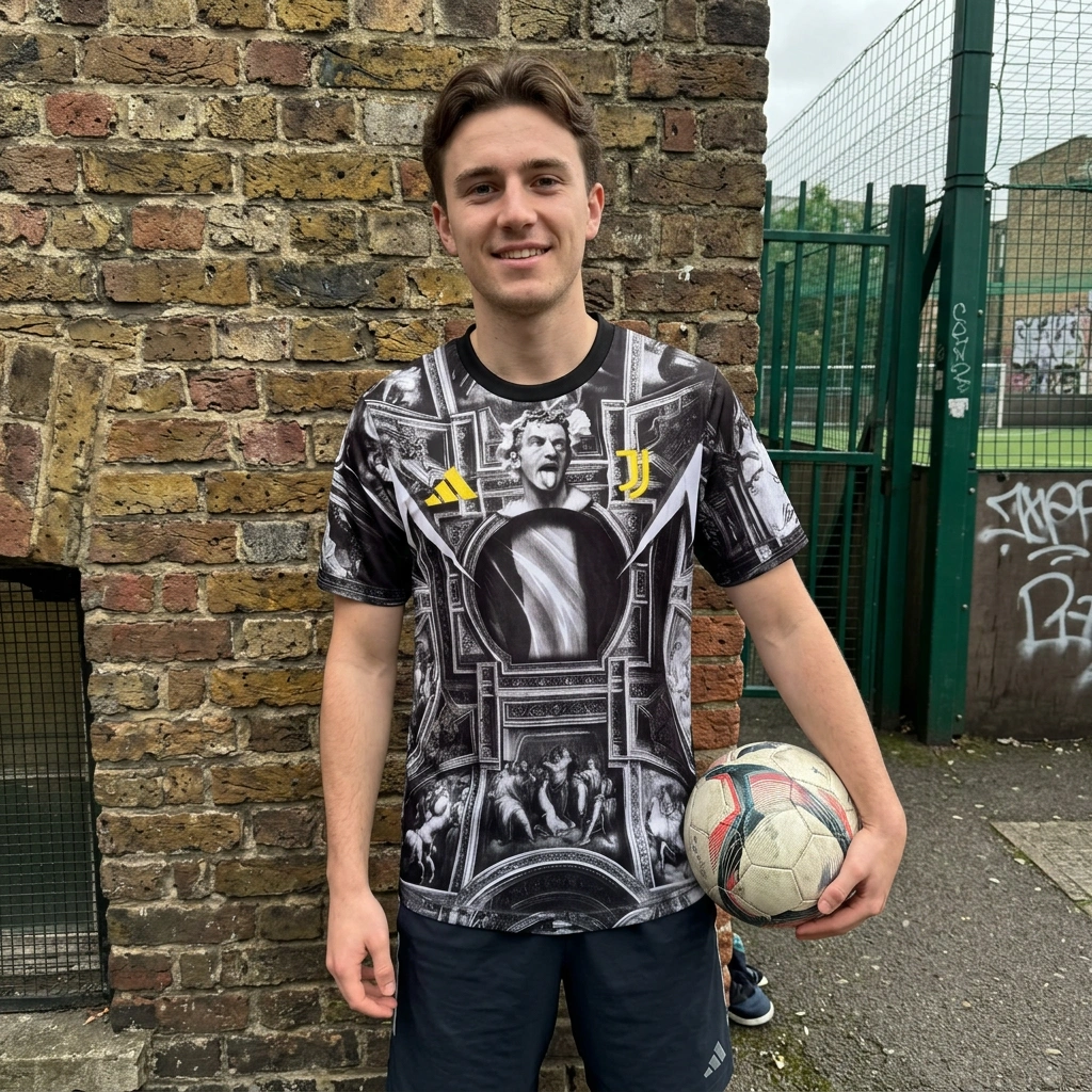 The print is insane. The detail on the classical art is way better than I expected. It feels like wearing a fresco. Fit is good, standard Adidas sizing. The yellow logos really pop against the black and white. Total statement piece for any Juve fan, glad I picked it up.