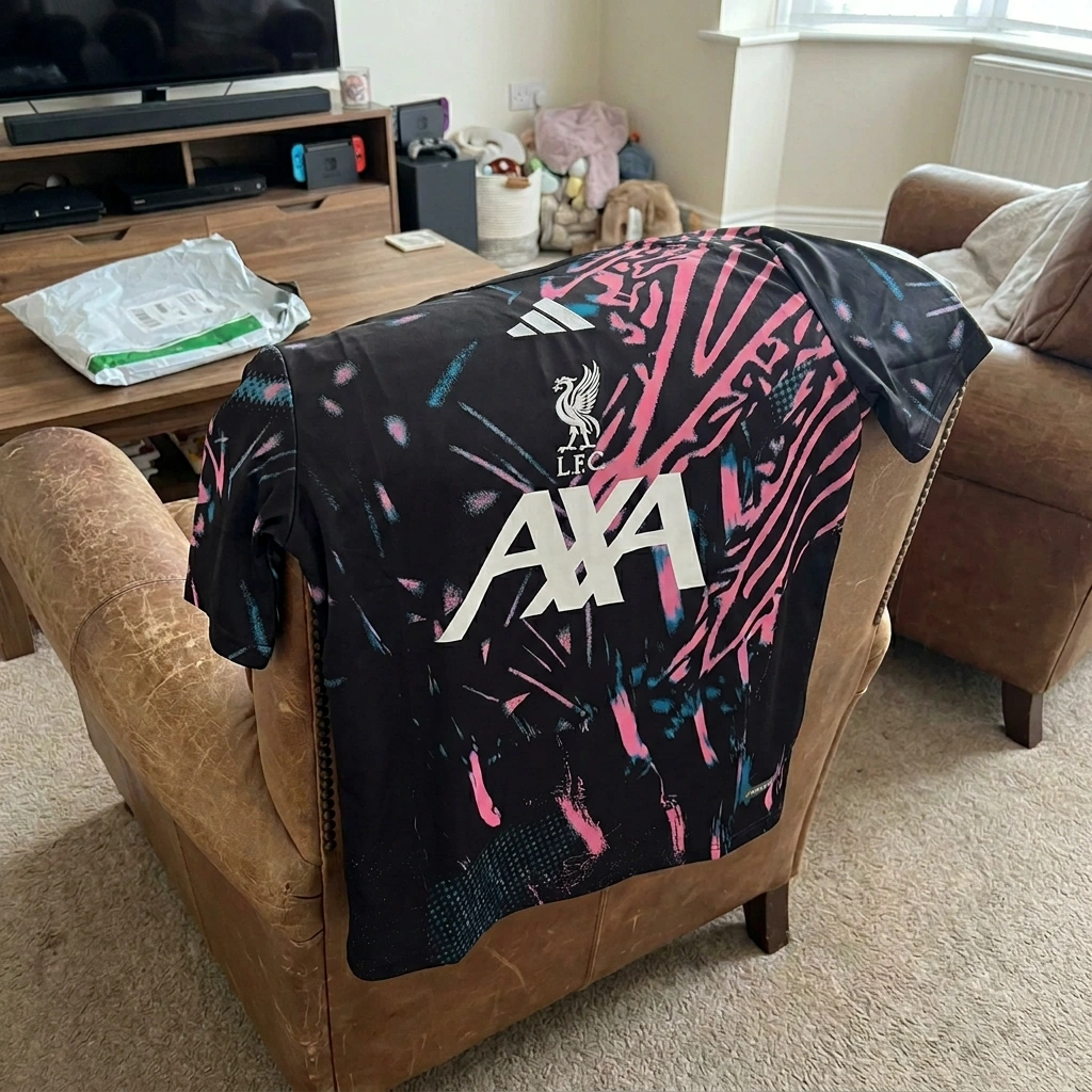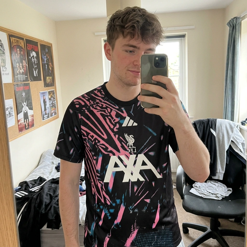 The graphics on this are sharp and looks much better in person than the official club photos. Material is light and breathable for a kickabout. The fit is spot on, not too tight like some player versions. Spot on, very pleased with it.