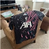 Fits nicely and looks much better in person than the stock photos. The colors are really vibrant against the black. Good material for playing or just casual wear.