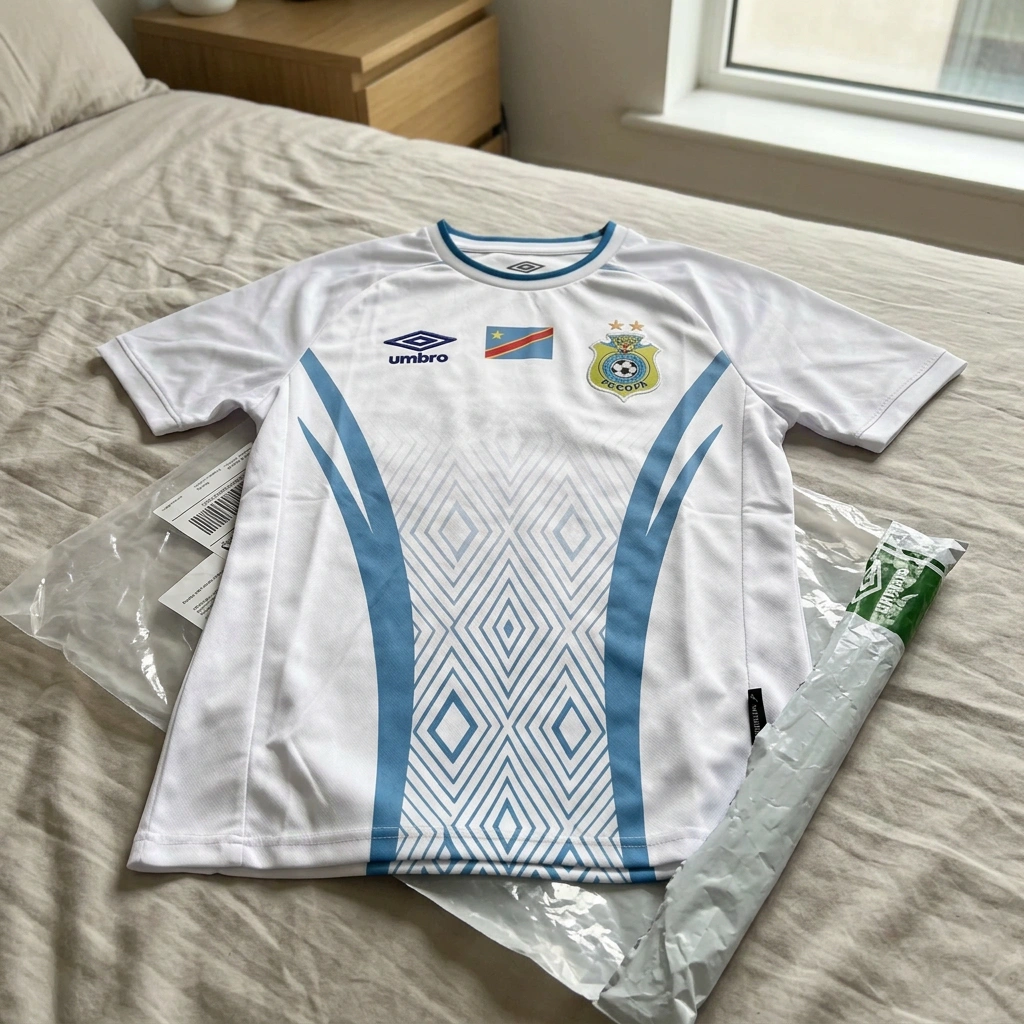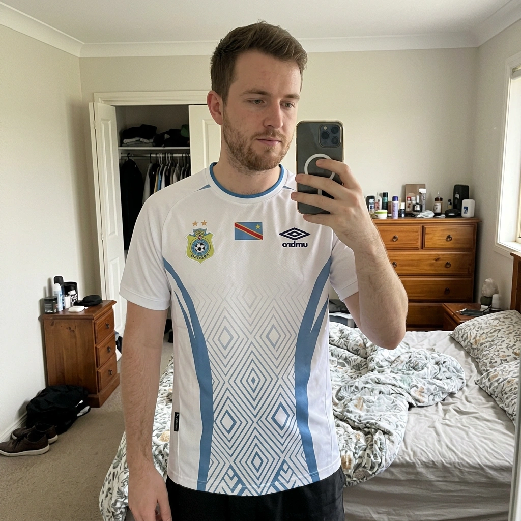 Managed to secure this DR Congo away shirt. The geometric pattern across the chest looks much better in person than the product photos. Quality seems decent, typical of Umbro's recent kits. Fit is standard. I've uploaded a photo of it on and a close-up of the badges so you can see the details. Solid addition to the collection.