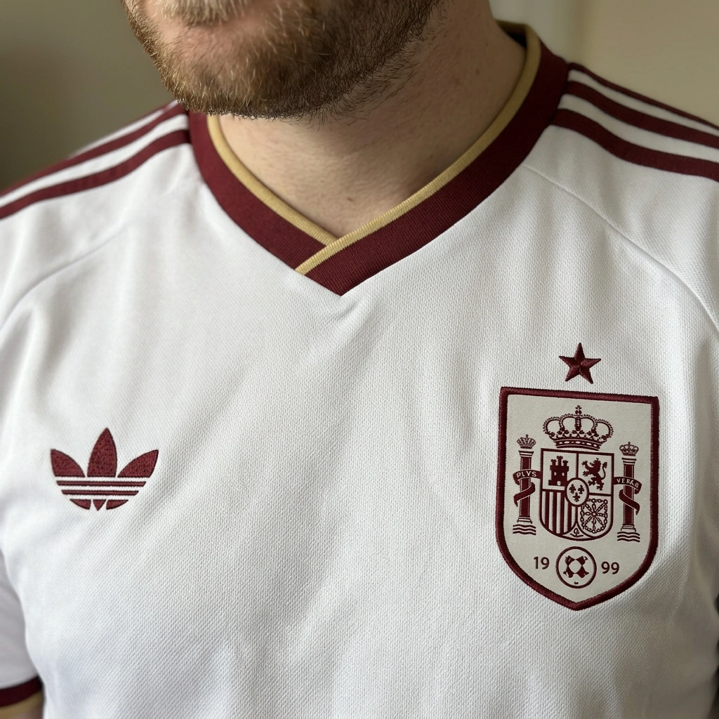 Managed to snag this retro Spain shirt. The white and maroon combo is clean. Fits well, not too tight or baggy. Material feels lightweight, good for summer. Stitched badge is a nice touch. No complaints, happy with it.